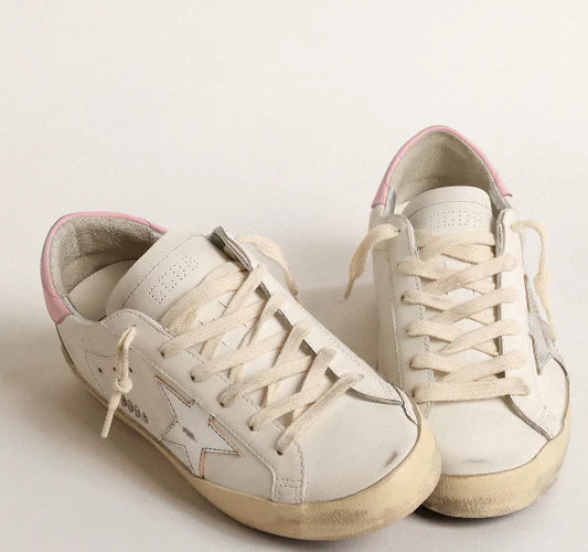 Stella in pelle argento e talloncino rosa