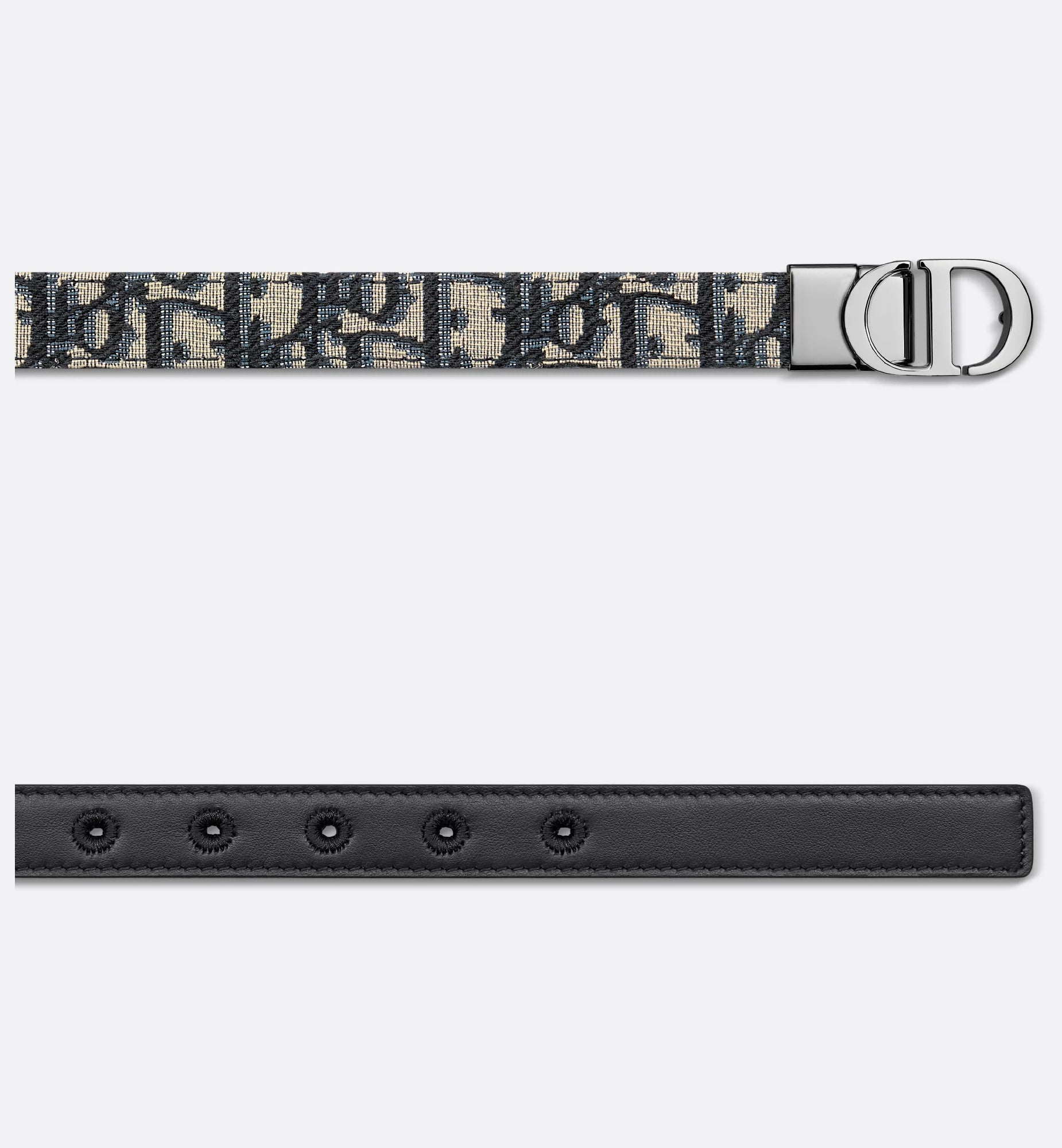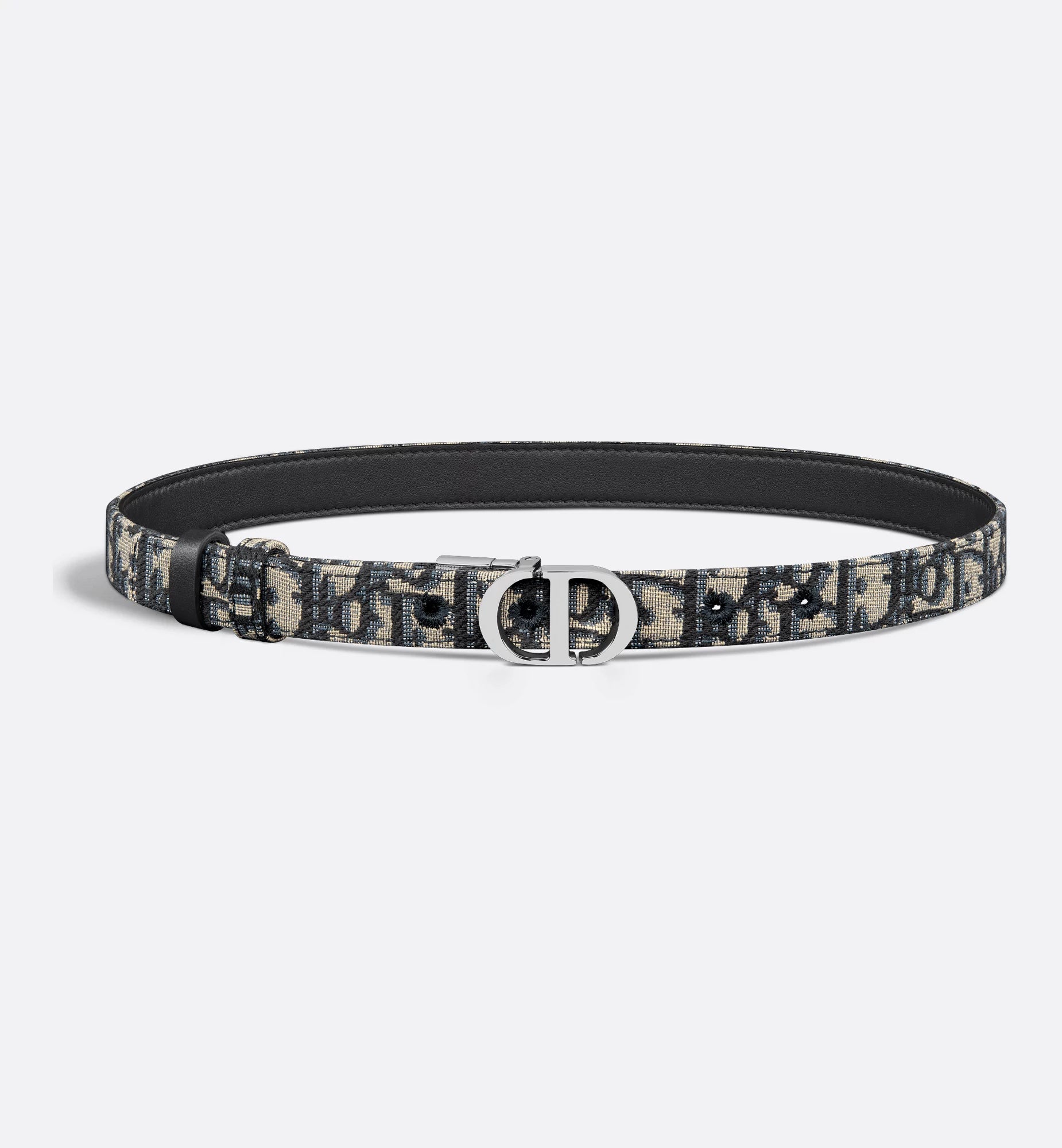 30 Cintura reversibile Montaigne in pelle di vitello liscia blu e jacquard Oblique in fibbia argento 20 mm donna